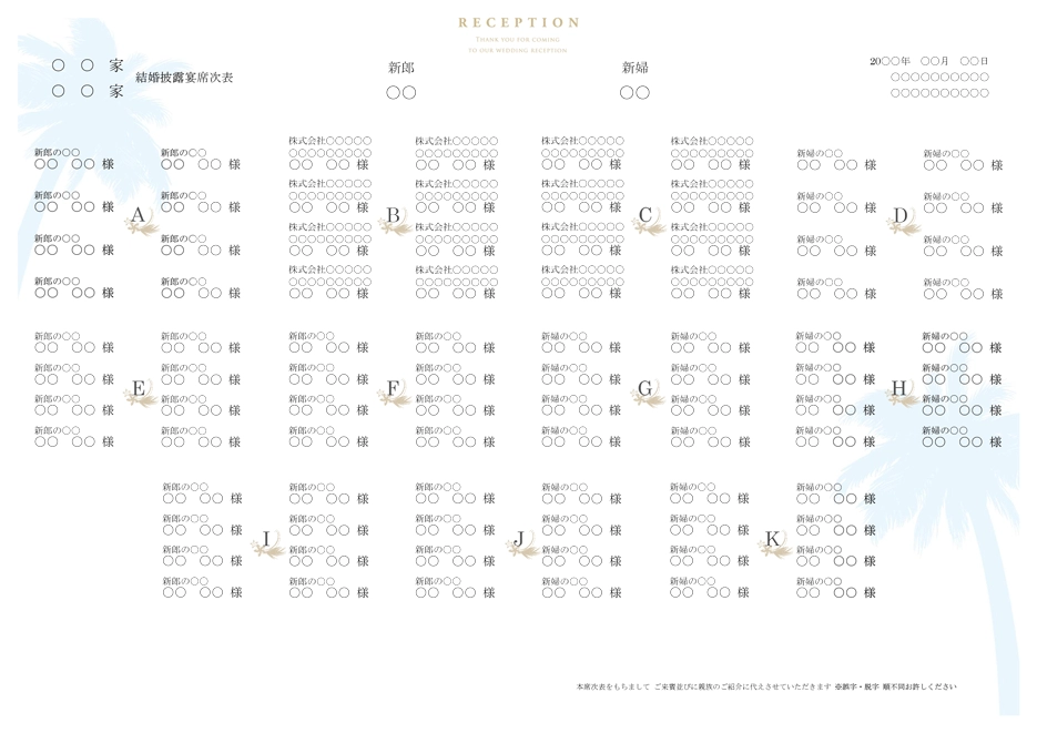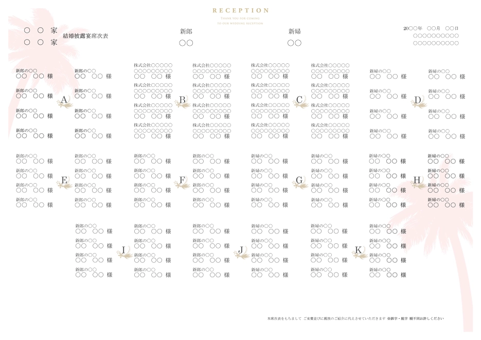 席次表にメニュー等も入りますが、受付で渡す席次表とは別に作成すると、ゲストのテーブル演出をランクアップできます。