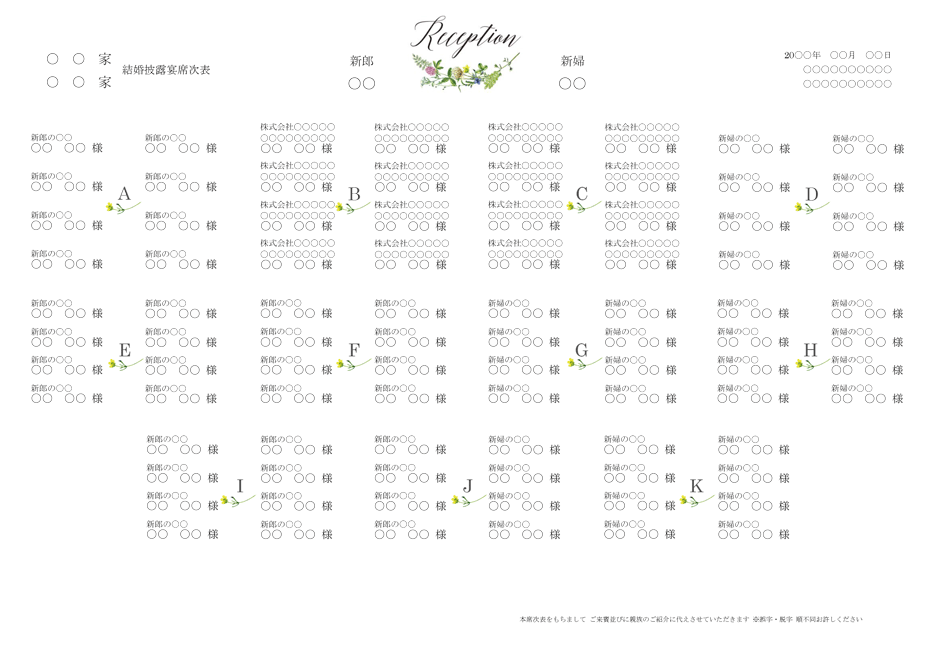 【48%OFF】ハーバルフローラ【印刷込】A4席次表+席札(無料)セット|結婚式 席次表ならPIARY(ピアリー)