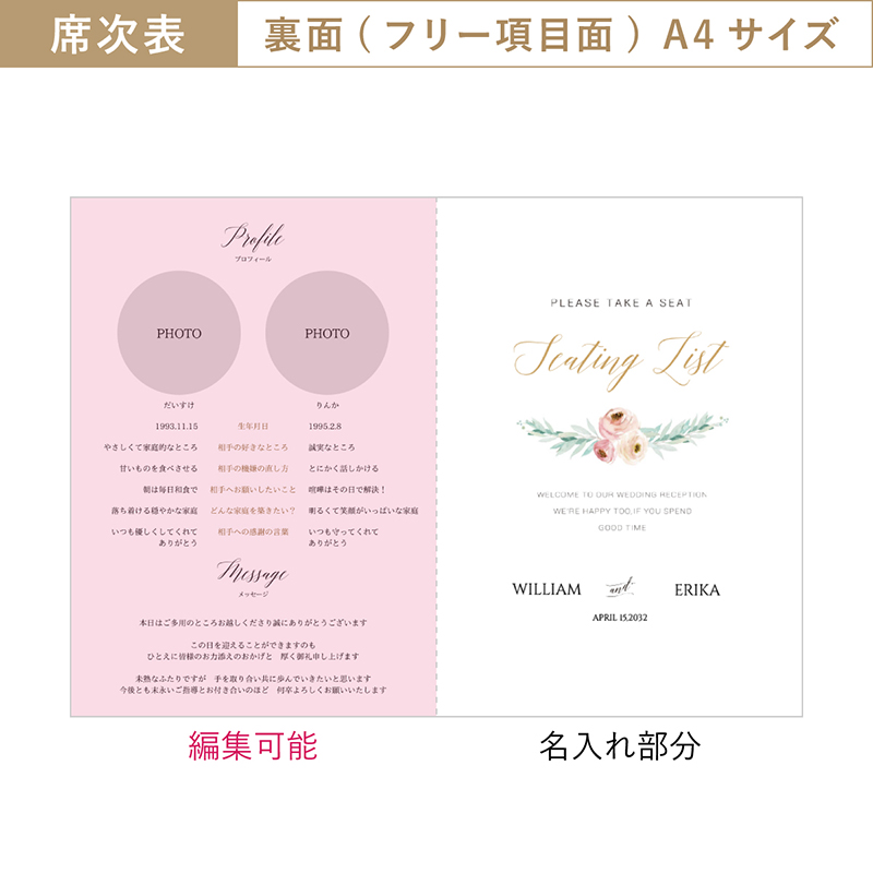 【45%OFF】リーブル ヴェールフルール【印刷込】A4席次表+席札(無料)セット|結婚式 席次表ならPIARY(ピアリー)