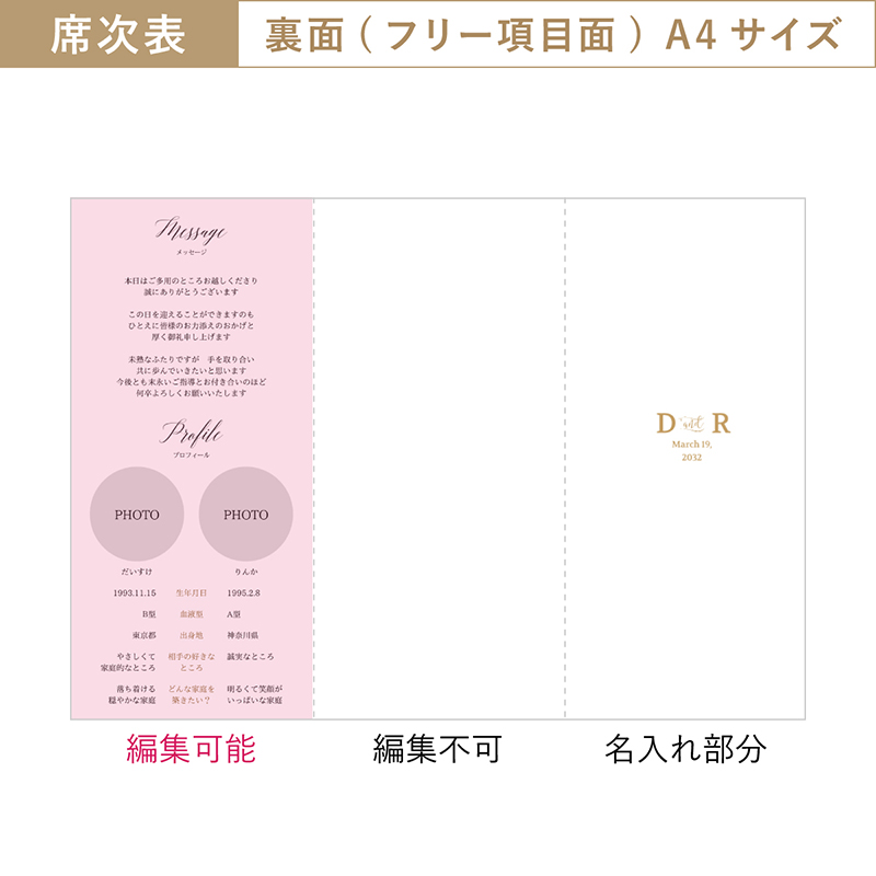 • 席次面以外のフリー項目面がA4サイズより多くなっています。