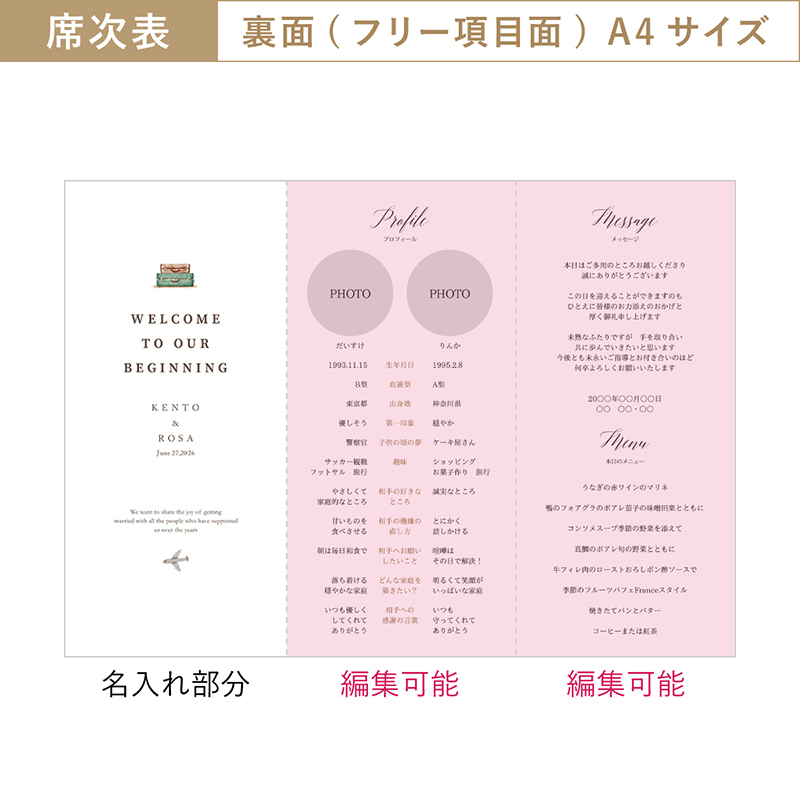 | 席次表 表紙 210×297mm(A4 ZRホワイト) | 10枚 |