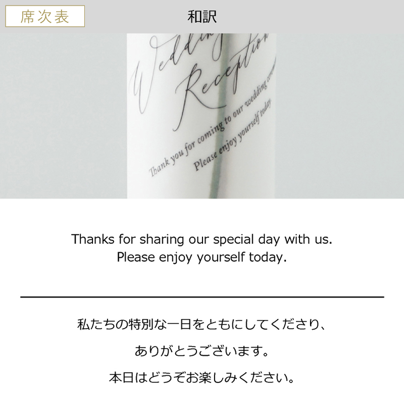 席次表にメニュー等も入りますが、受付で渡す席次表とは別に作成すると、ゲストのテーブル演出をランクアップできます。