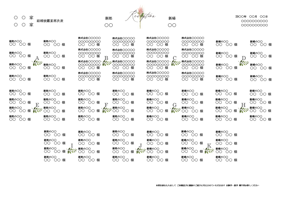 席次表にメニュー等も入りますが、受付で渡す席次表とは別に作成すると、ゲストのテーブル演出をランクアップできます。