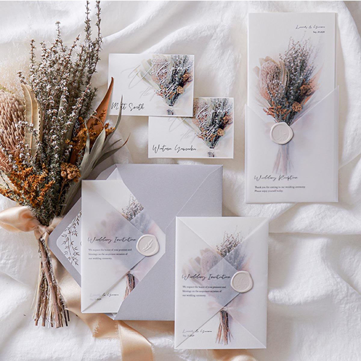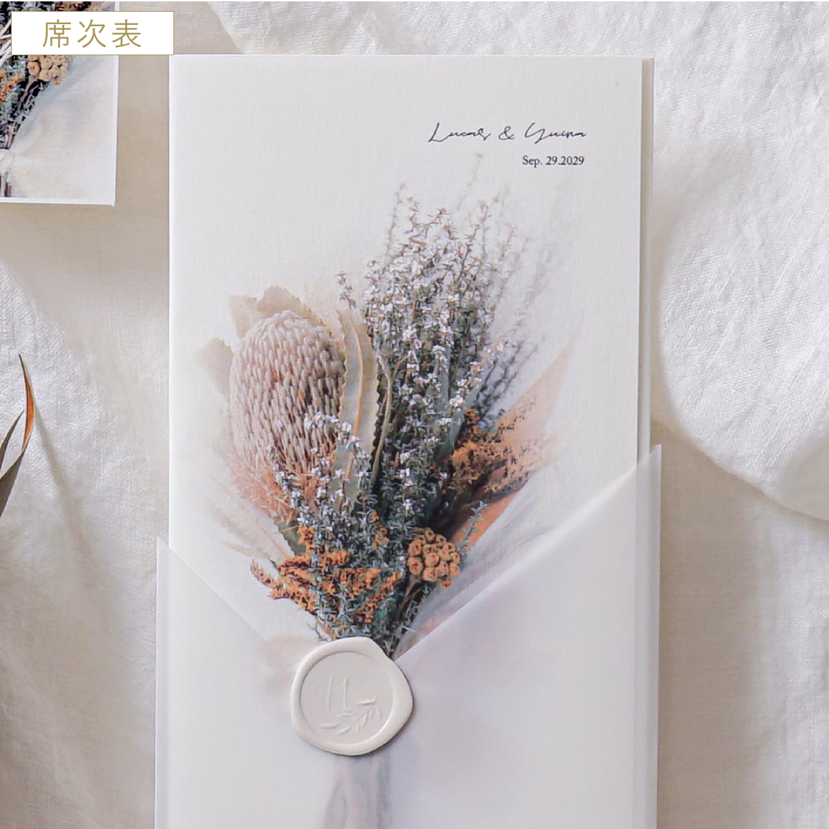 【27%OFF】シャルムドブーケ(バンクシア)【印刷込】席次表A4+席札(無料)セット|結婚式 席次表ならPIARY(ピアリー)