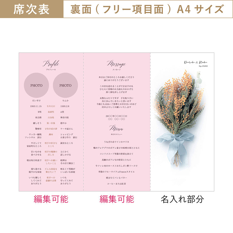 【48%OFF】シャルムドブーケ(ミモザ)【印刷込】A4席次表+席札(無料)セット|結婚式 席次表ならPIARY(ピアリー)
