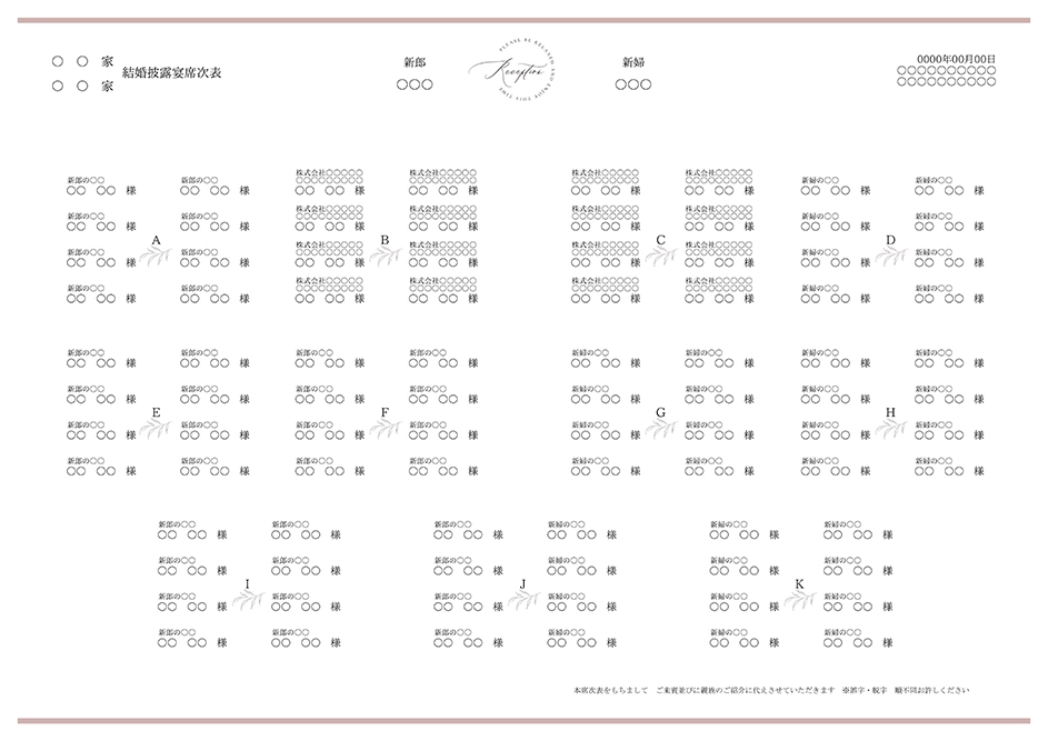 席次表にメニュー等も入りますが、受付で渡す席次表とは別に作成すると、ゲストのテーブル演出をランクアップできます。