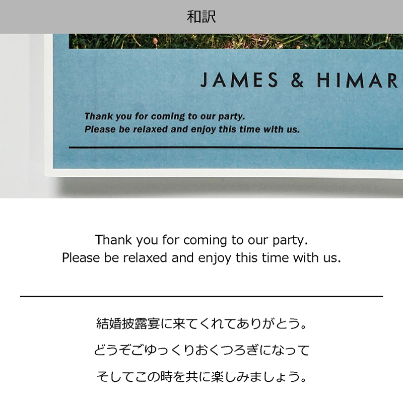 席次表にメニュー等も入りますが、受付で渡す席次表とは別に作成すると、ゲストのテーブル演出をランクアップできます。