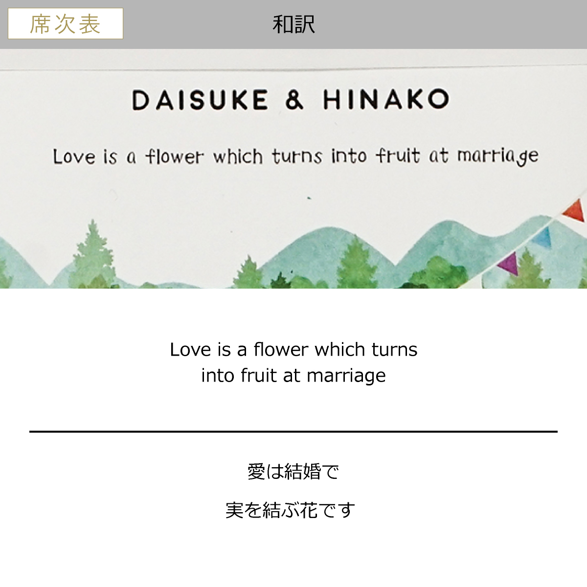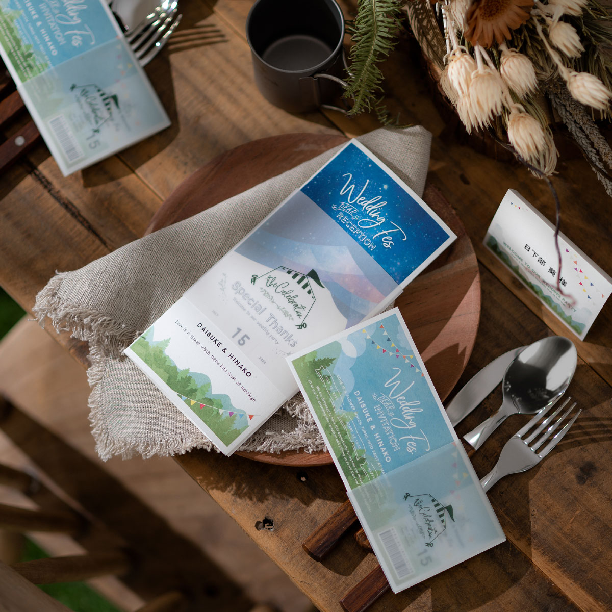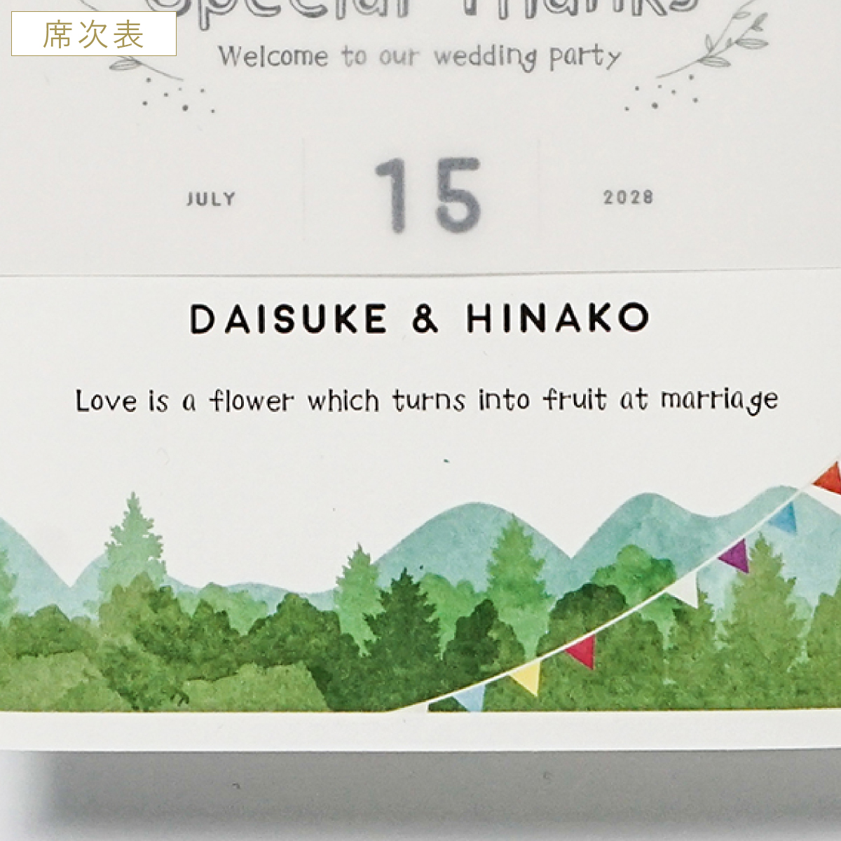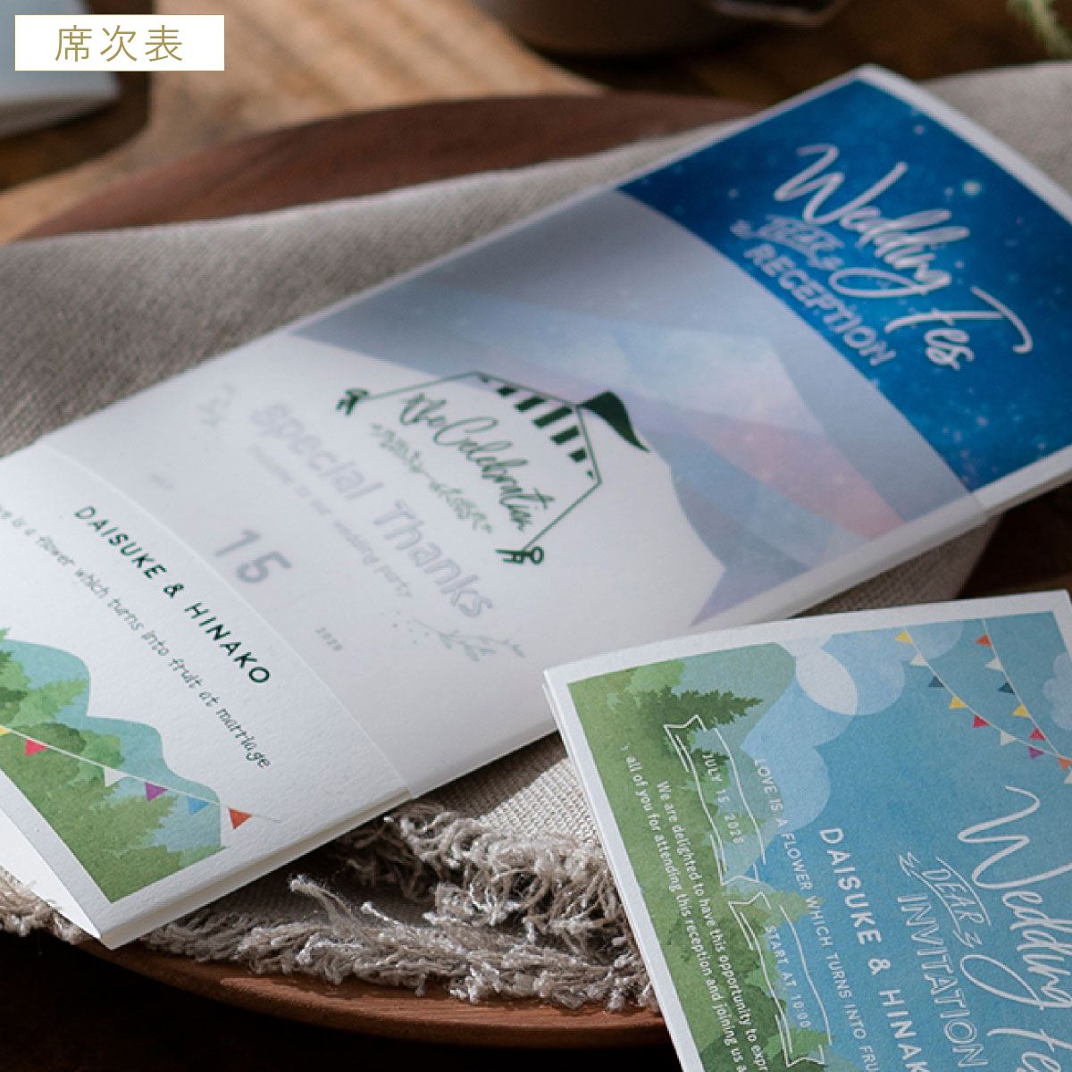 席札も席次表も可愛くてフェスみたいな結婚式になりそうです。
