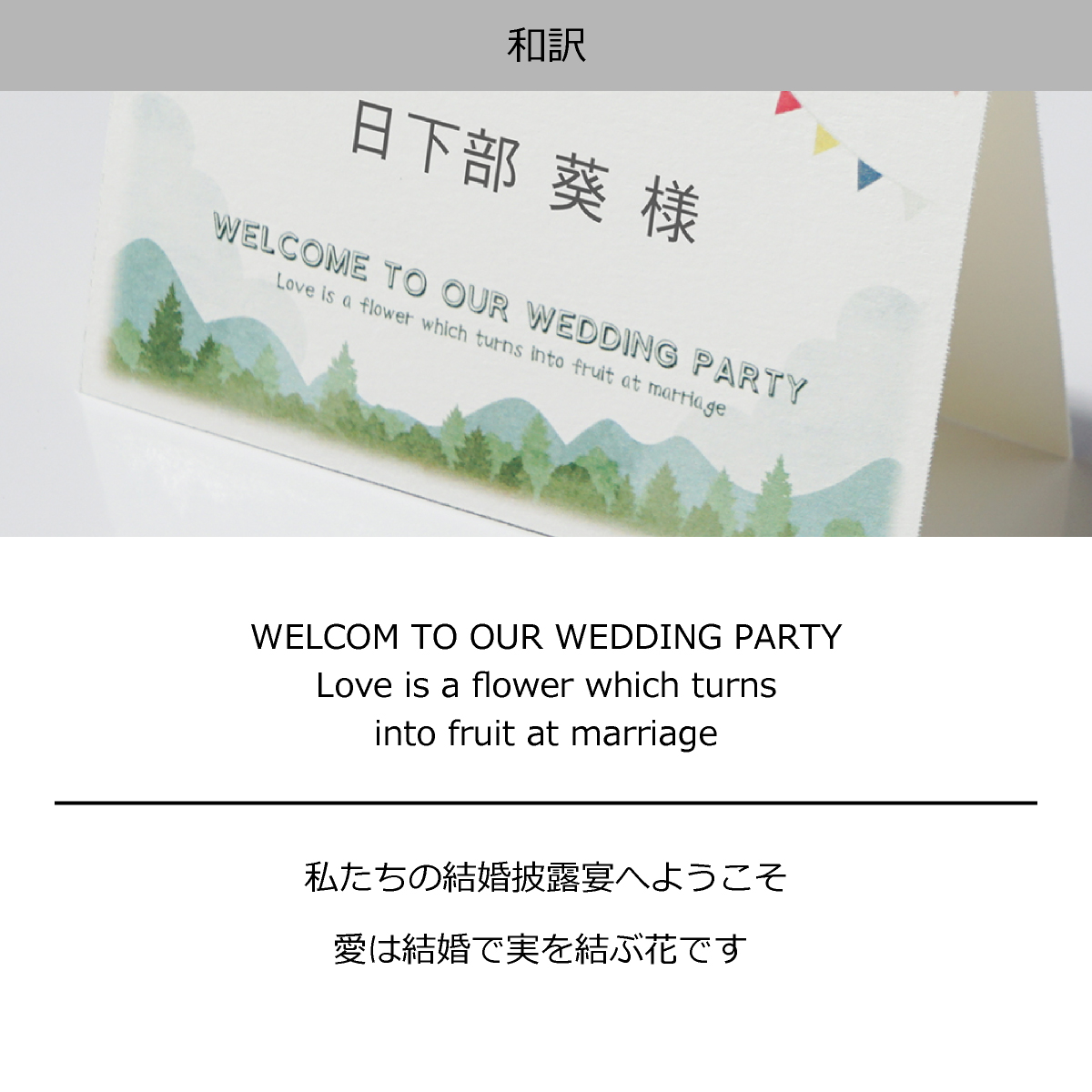 キャンプウェディングのイメージにピッタリでした!山やガーランドのイラストも可愛い!紙もしっかりした素材でした。外のトレーシングペーパー的なものを差し込むのに少し手間取りましたがコツを掴めばそんなに大変じゃありませんでした。色合いが綺麗で満足です!