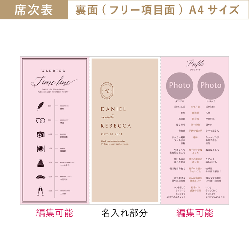 • 席次面以外のフリー項目面がA4サイズより多くなっています。
