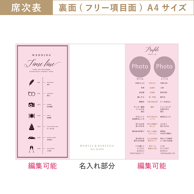 | 席次表 中紙 縦210×横297mm(A4ホワイト・三つ折筋入り) | 10枚 |