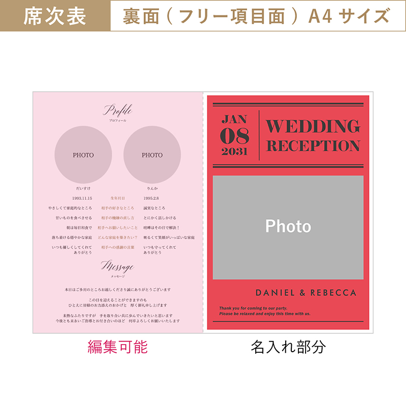 【48%OFF】La Magazine -ラ・マガジン- ポピーレッド 【印刷込】A4席次表+席札(無料)セット|結婚式 席次表ならPIARY(ピアリー)