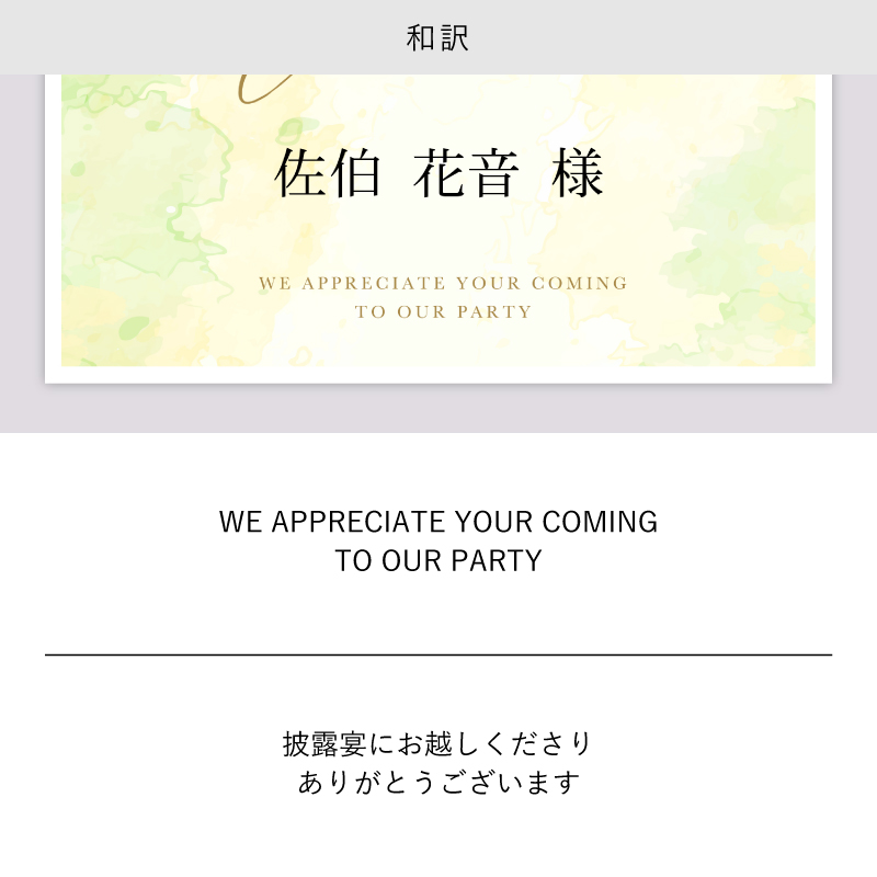席次表にメニュー等も入りますが、受付で渡す席次表とは別に作成すると、ゲストのテーブル演出をランクアップできます。