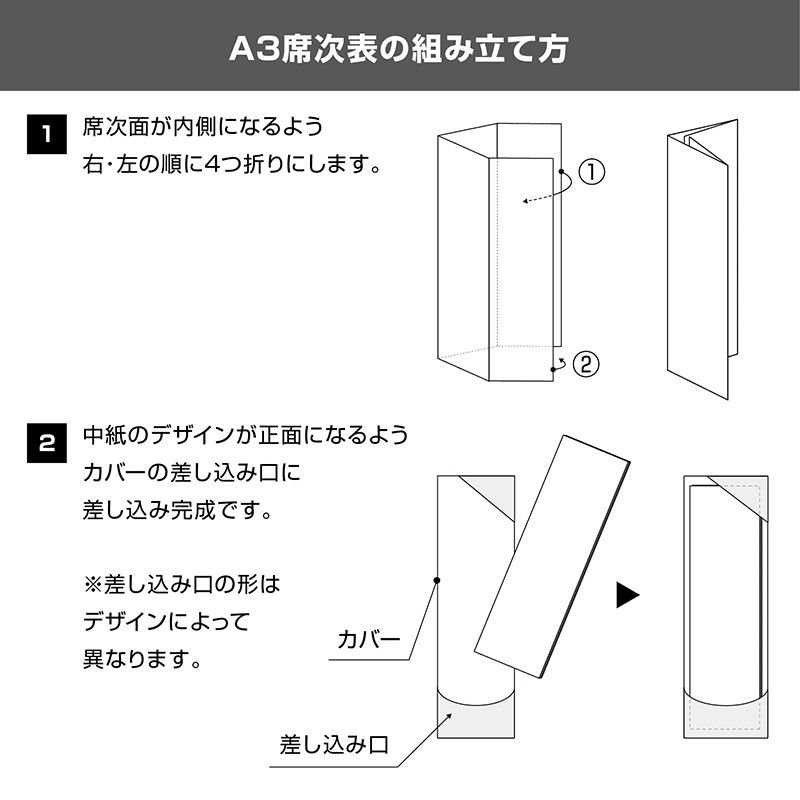 | 席次表 中紙 297×420mm(A3ナチュラル・四つ折筋入り観音開き) | 10枚 |