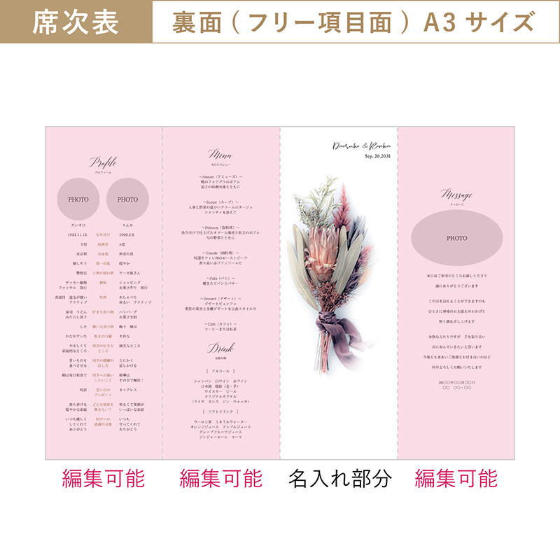 【43%OFF】シャルムドブーケ(プロテア)【印刷込】A3席次表+席札(無料)セット|結婚式 席次表ならPIARY(ピアリー)