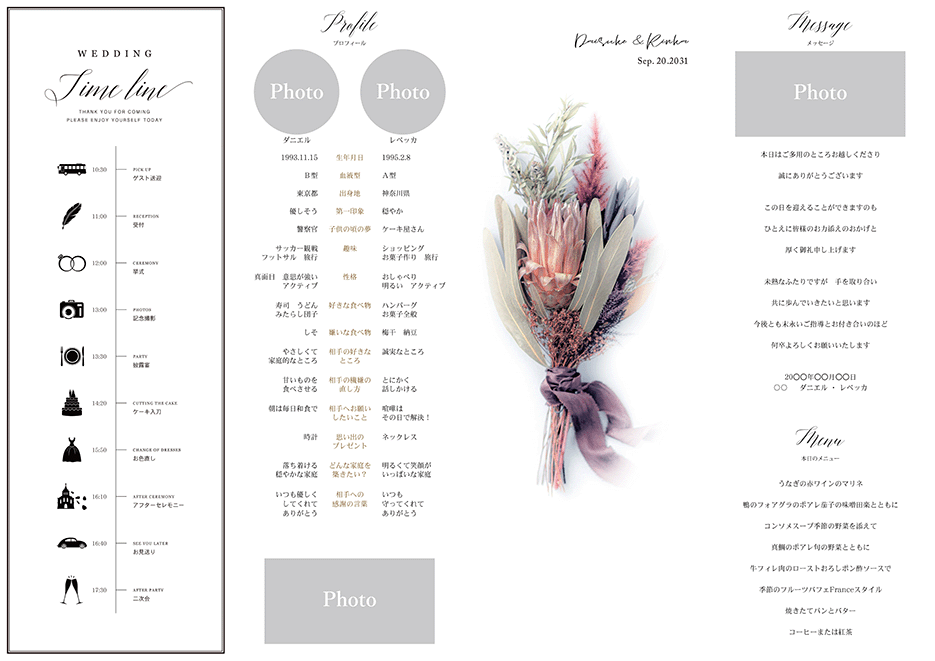 印刷込キット(A3席次表)+プロフィールブック+メニュー表【無料】
