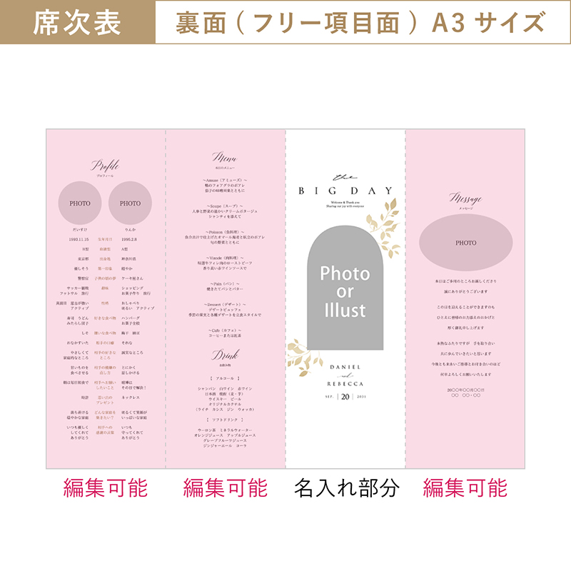 | 席次表 中紙 縦297×横420mm(A3アイボリー・四つ折筋入り観音開き) | 10枚 |