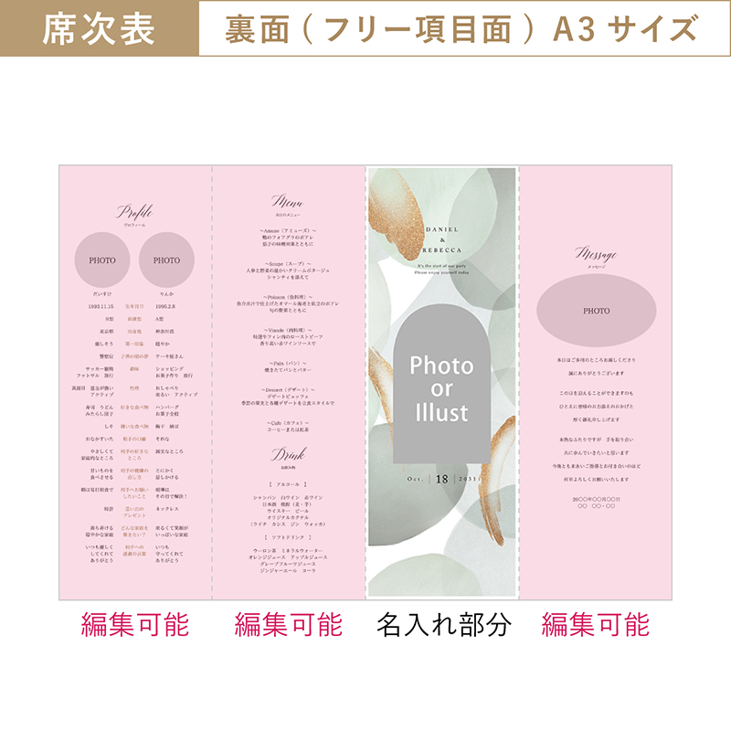 | 席次表 中紙 縦297×横420mm(A3アイボリー・四つ折筋入り観音開き) | 10枚 |