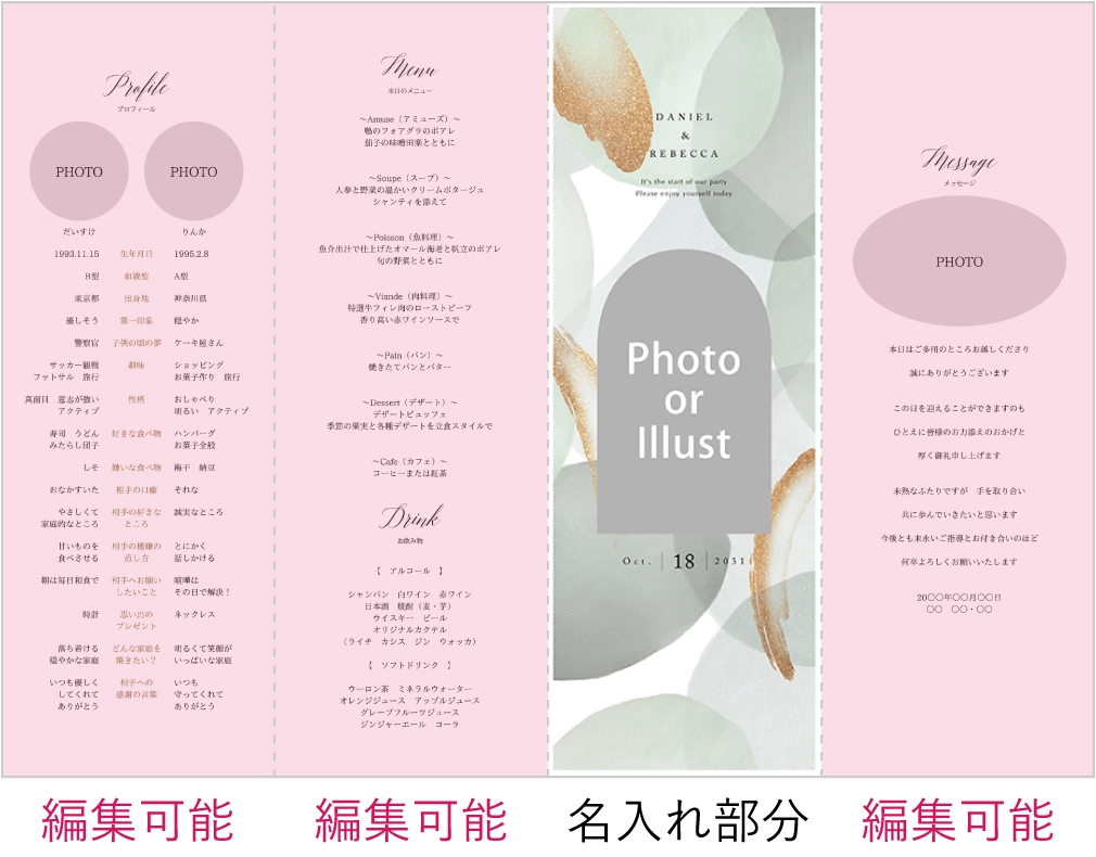印刷込キット(A3席次表)+プロフィールブック+メニュー表【無料】