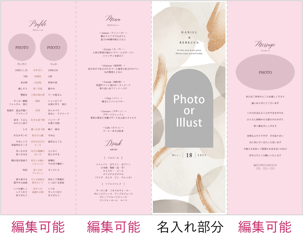 思っていたよりも紙質がよく 周りの方にも褒められました! 写真も結構鮮明だし サイズも大きく 席次表は文字が小さくなりがちですが 文字サイズも選べてとてもよかったです