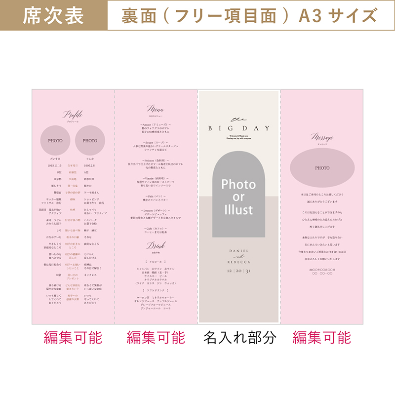 | 席次表 中紙 縦297×横420mm(A3アイボリー・四つ折筋入り観音開き) | 10枚 |