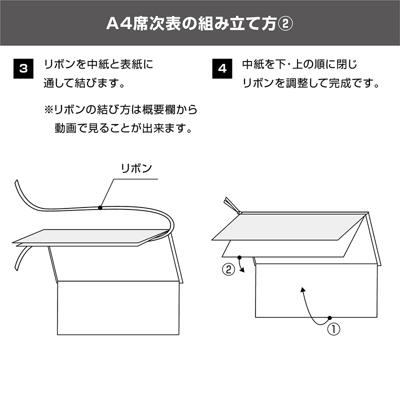 高級感もあり、満足のいく席次表ができました。 紐の結び方も慣れると簡単でした。