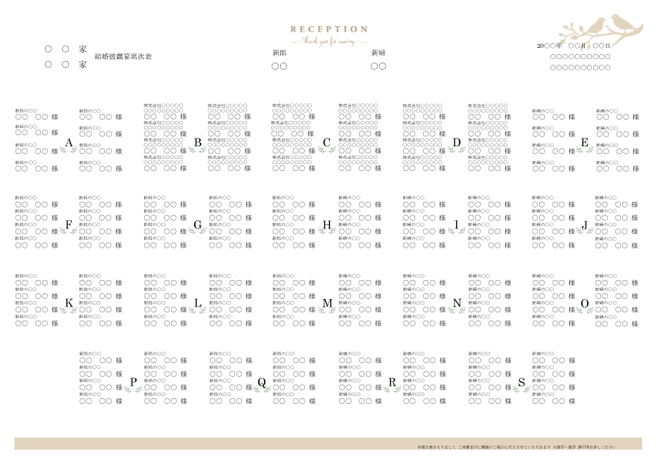 | 席次表 表紙 A4:218×208mm A3:304×220mm | 10枚 |