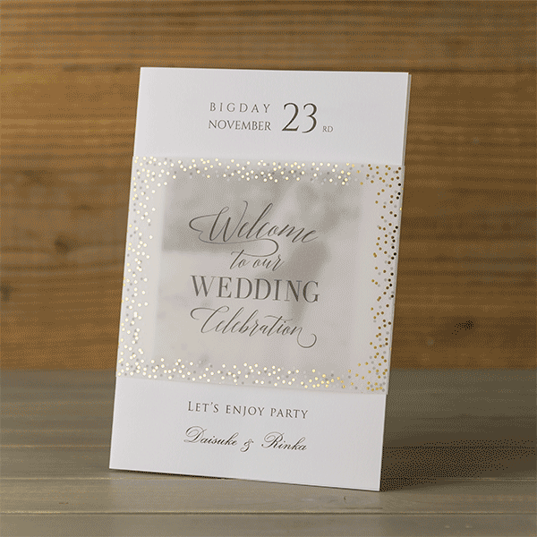 披露宴で使用するため注文しました^_^ ピアリーの店舗で見て一目惚れした商品です! トレーシングペーパーがキラキラですっごく可愛いです! 席次表の入力が少し難しかったですが、コールセンターに問い合わせたら丁寧に教えていただきました。値段もお安いのでおすすめです^_^