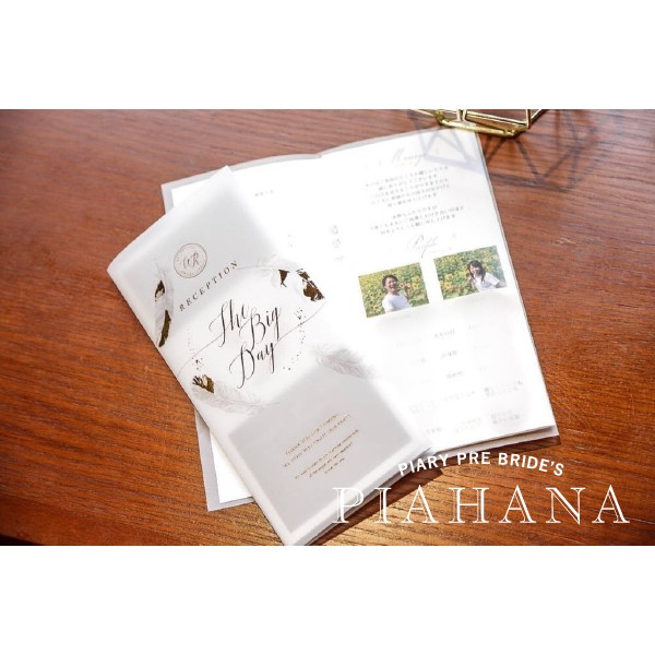 文字の大きさやフォントなどたくさん種類があり、とても良かったです。 席次表、メニュー表、プロフィールの全て一体式で少し不安でしたが、何も不便なく見やすかったです。 外の薄紙が少しだけ外れやすかったですが、あとは全てデザインも可愛く結婚式のテーマとマッチでした!