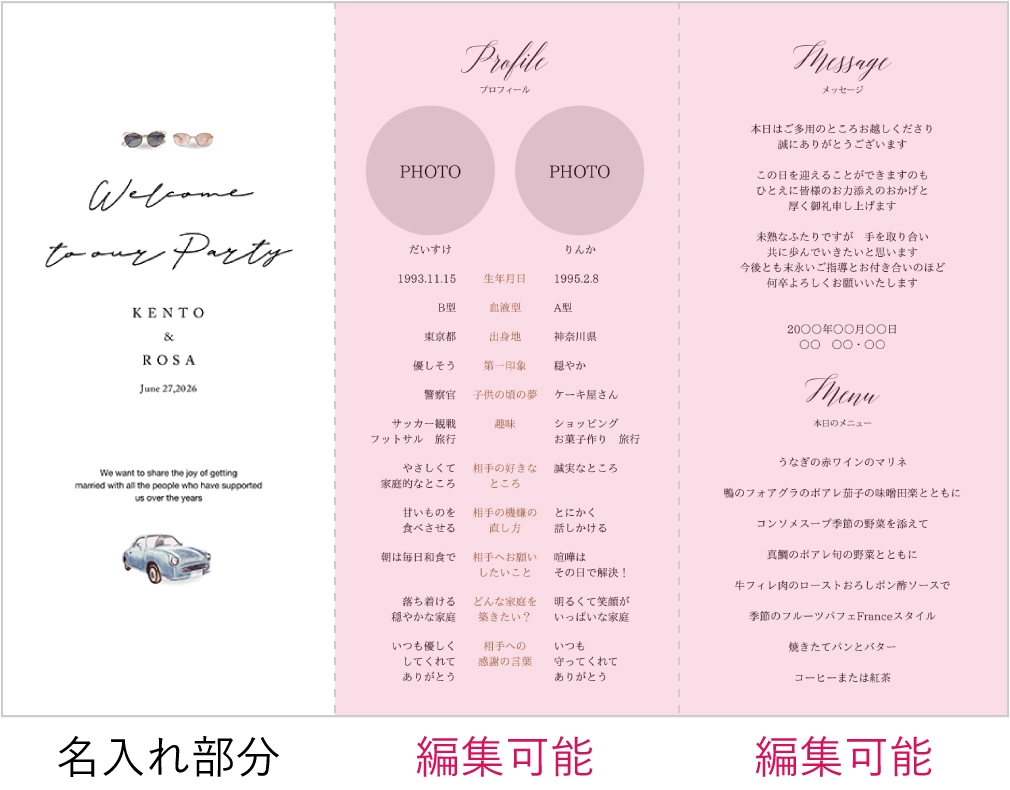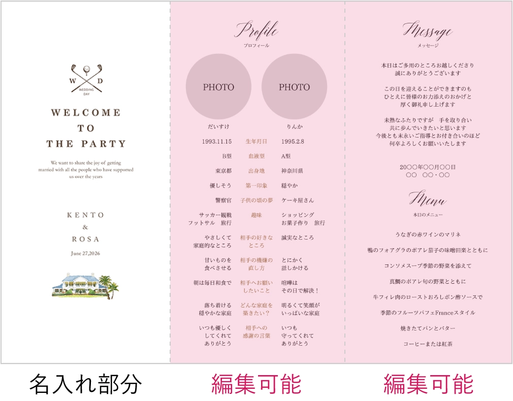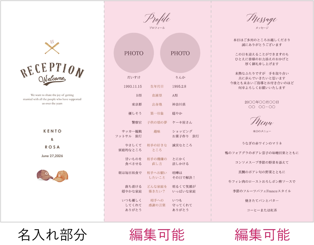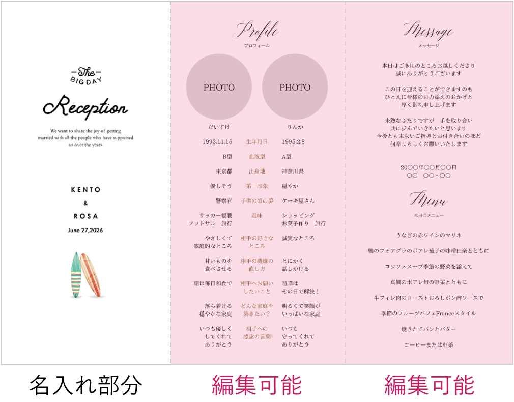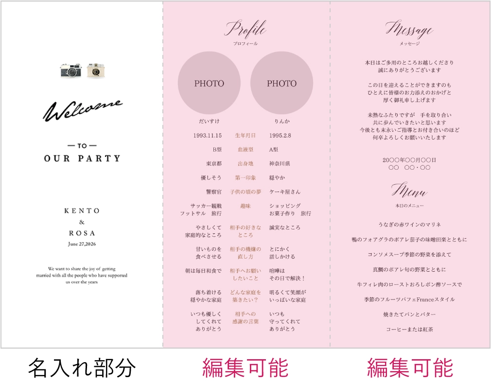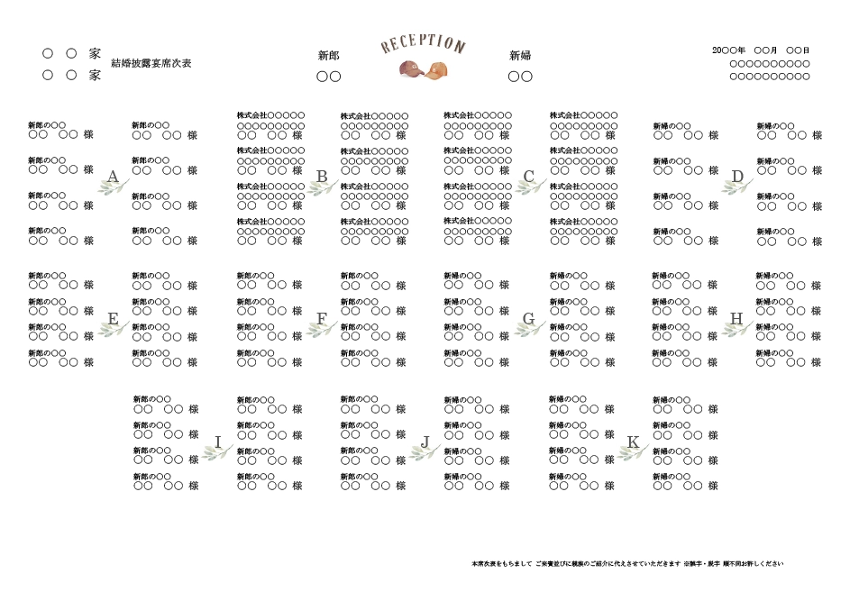 デザインが可愛くて好評でした! ここは注意点 席次表を丸く筒上にするため、 若干見にくいとのお声がありました。