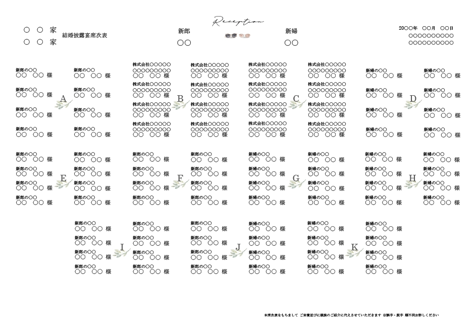 | 席次表 表紙 210×297mm(A4 ZRホワイト) | 10枚 |