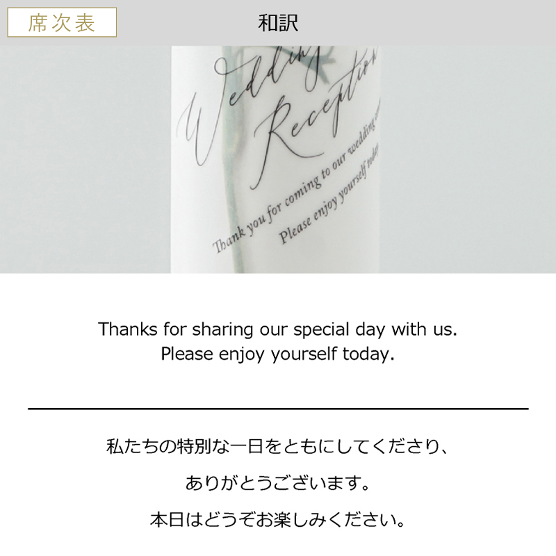 私たちは約60名のゲストを招待しましたが、10部ずつ違う種類のお花の席次表を購入しました。席次表を集めると花束のようで本当に感動しました!ゲストからもそれぞれ特別感があってうれしいと喜んでいただけました!とてもおすすめです♪
