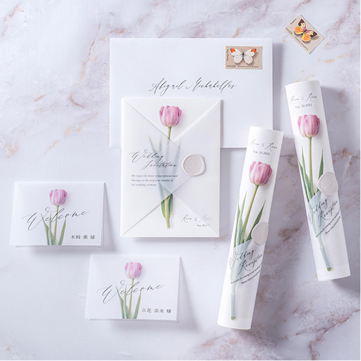 最後の仕上げを自分でしましたが、簡単に可愛くできました。 春婚だったのでチューリップにしましたが、イメージ通りの商品が届いて満足です。