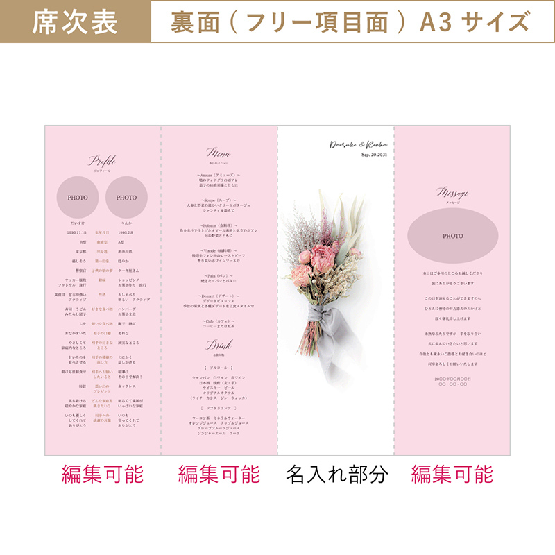 | 席次表 表紙 A4:縦130×横240mm A3:縦184×横243mm | 10枚 |