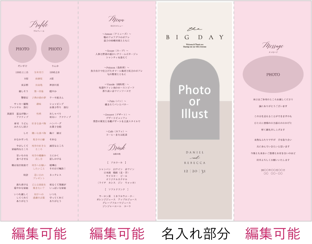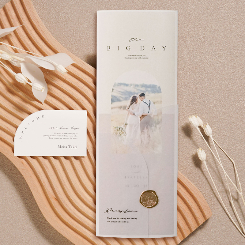 素敵なデザインです。 ナチュラルな雰囲気の挙式にしたかったので、ぬくもりのあるタイプのものを探していました。編集ソフトも使いやすく、発注から発送まであっという間に届けて下さりました。ありがとうございました。