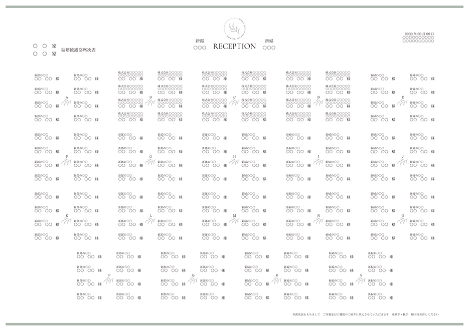 | 席次表 表紙 A4:縦142×横230mm A3:縦175×横243.5mm | 10枚 |