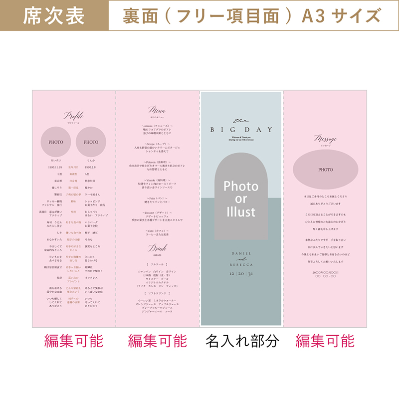 | 席次表 表紙 A4:縦142×横230mm A3:縦175×横243.5mm | 10枚 |