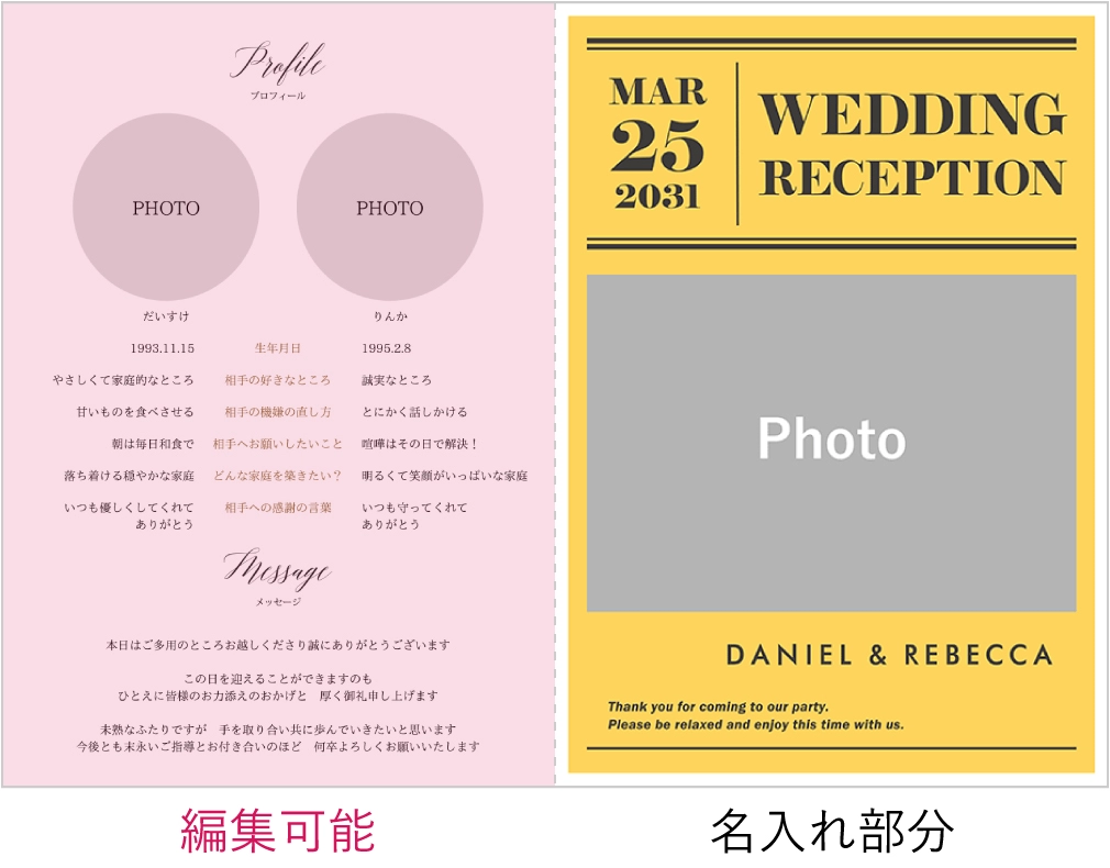 お値段はとってもお手頃価格で少しだけ心配していましたが、実際に手元に届いたものは、髪質もしっかりしていて、色味も好みのもので、結婚式がより楽しみになりました! プロフィール面もPDF通りでした!