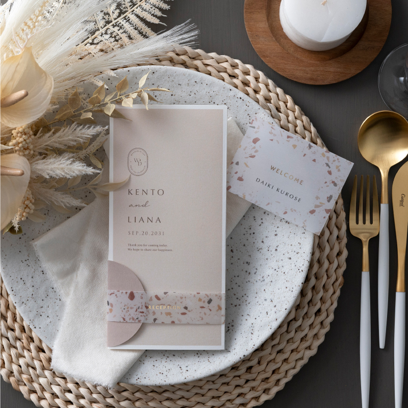 おふたりのプロフィールに加え、メニューやタイムラインなどが印刷できます。