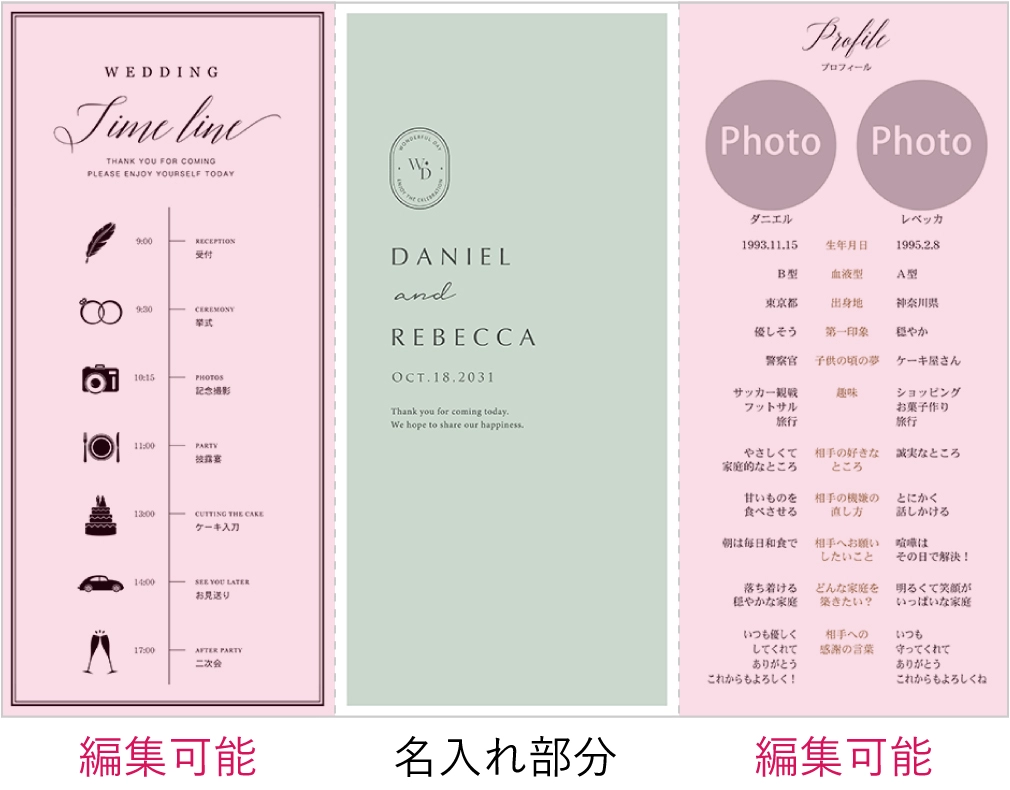 トレーシングペーパーでおしゃれなテーブルコーデができました。 このデザインは席次以外にもあいさつ、プロフィール、タイムスケジュールも載せられて一枚でかなり充実していました。 メニュー表がプレゼントだったのも購入の決め手になりました。 デザインを選ぶ画面がちょっと見づらかったのと、帯がトレーシングペーパーなので繊細に扱わなければいけませんでしたが、 総合的に大満足です!