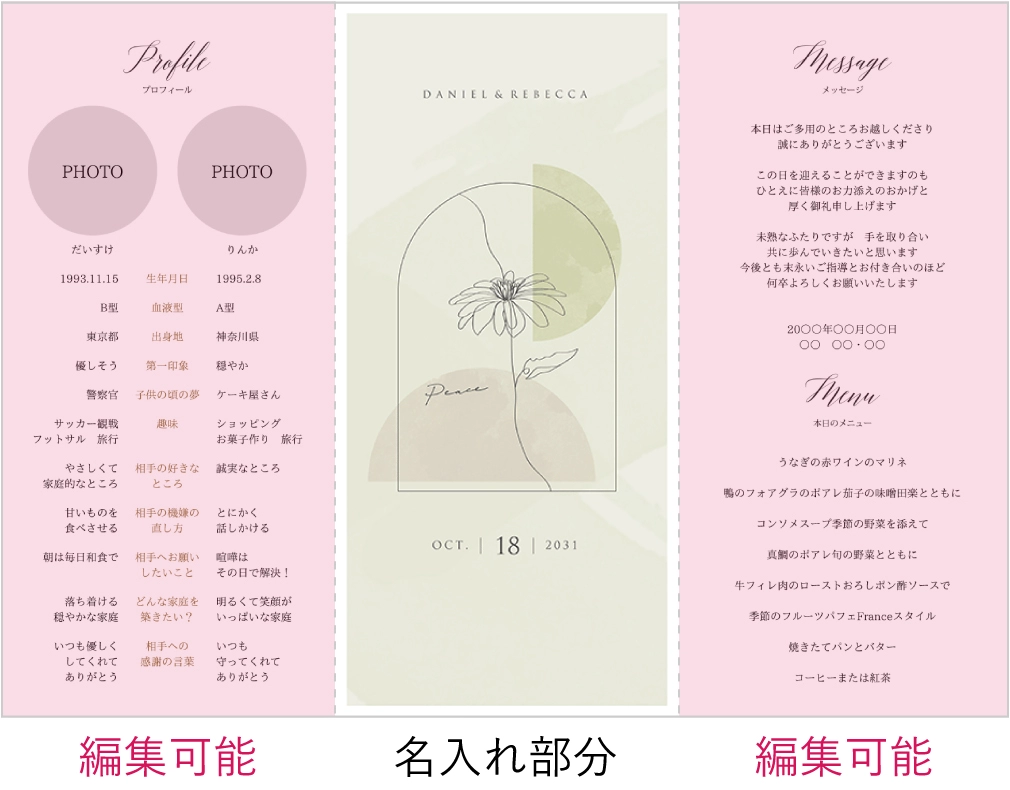 | 席次表 中紙 縦210×横297mm(A4ホワイト・三つ折筋入り) | 10枚 |
