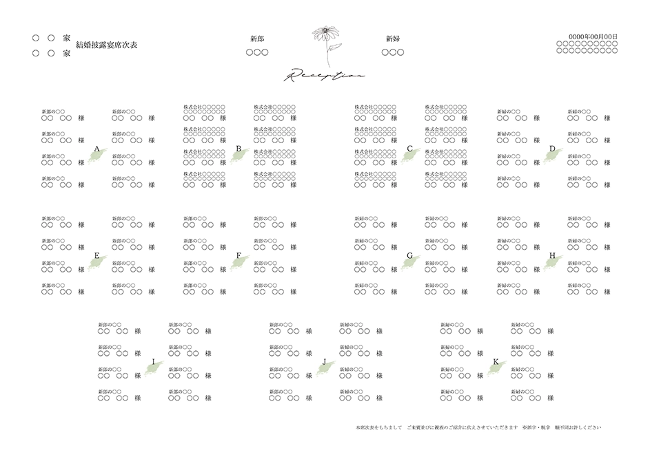 | 席次表 表紙 縦142×横230mm | 10枚 |