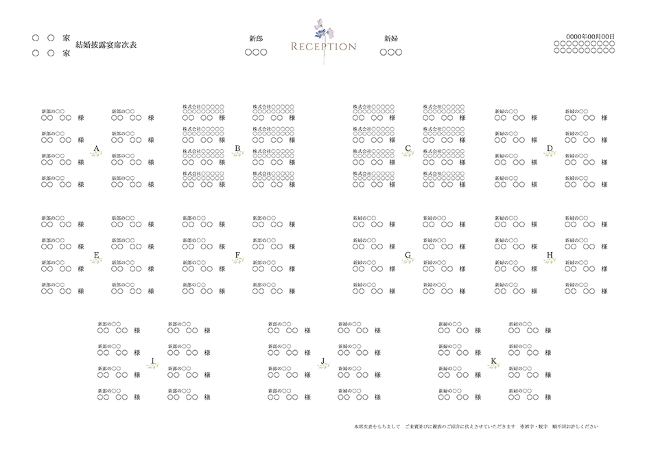 | 席次表 中紙 210×297mm(A4 ZRホワイト) | 10枚 |