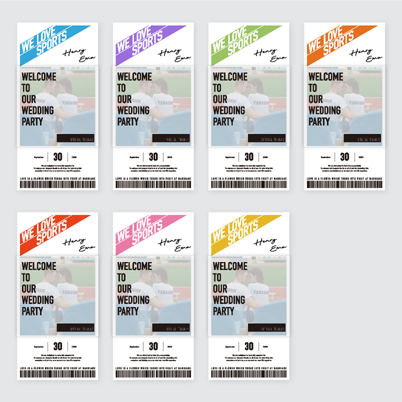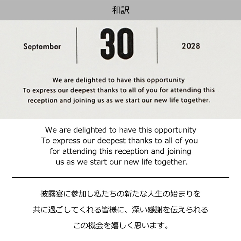 おふたりのプロフィールに加え、メニューやタイムラインなどが印刷できます。