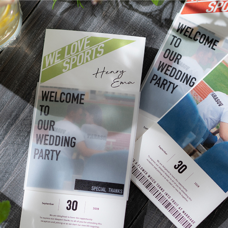 おふたりのプロフィールに加え、メニューやタイムラインなどが印刷できます。