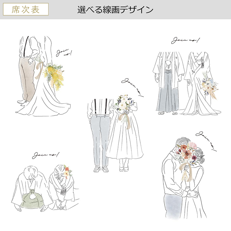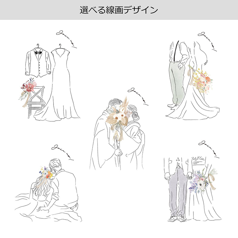 おふたりのプロフィールに加え、メニューやタイムラインなどが印刷できます。