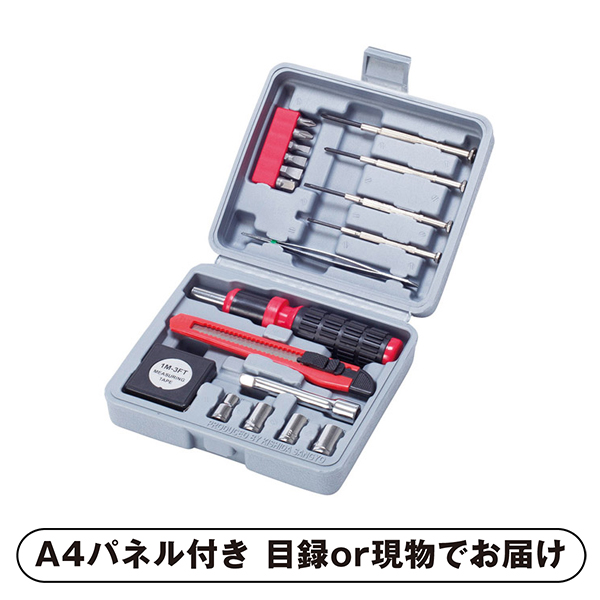 | 内容 | ケース(約150×130×50mm)・メジャー(1m)・エクステンションバー・ビットドライバー・カッターナイフ・ピンセット・ビットアダプター×各1、ビット×5、(+)精密ドライバー・(-)精密ドライバー×各2、ソケット×4 |