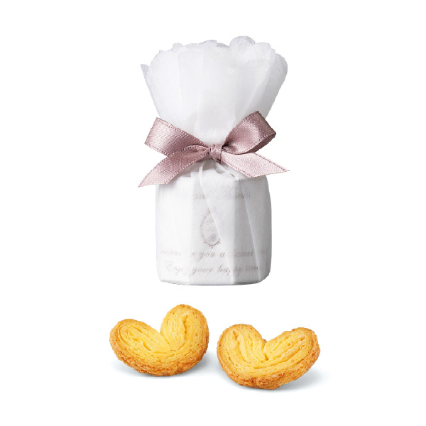 落ち着いたモーヴカラーが上品で華やかな印象を与える「モーヴデコレーション」。可愛らしいハートパイを詰め込んだ小箱が、ロマンティックな雰囲気を演出。ゲストさまへの感謝の気持ちを届けるプチギフトです。