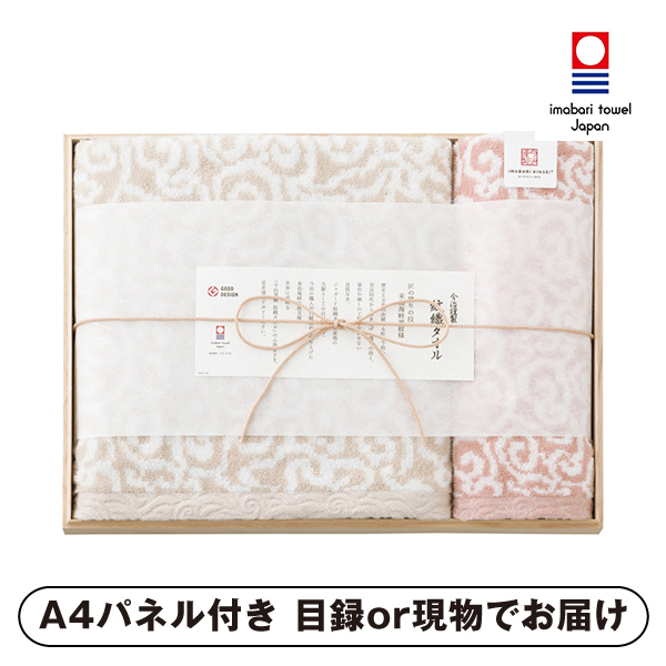 日本の伝統的な模様である唐草模様と来島海峡の荒波をイメージした波模様から着想を得た、手描きの不規則な曲線を美しく表現したタオルギフト。厳選された2種類のパイル糸を使い、ふっくらとやわらかいタオルになっています。品格を感じる木箱に入ったギフトです。