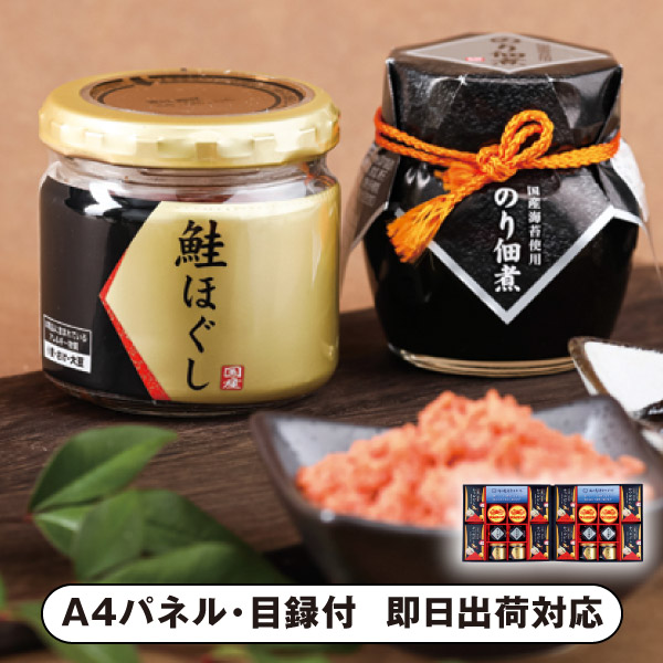 鮭ほぐし50g・のり佃煮80g・紅ずわいがにほぐし身55g×各4、かつおだし(4g×8)×8